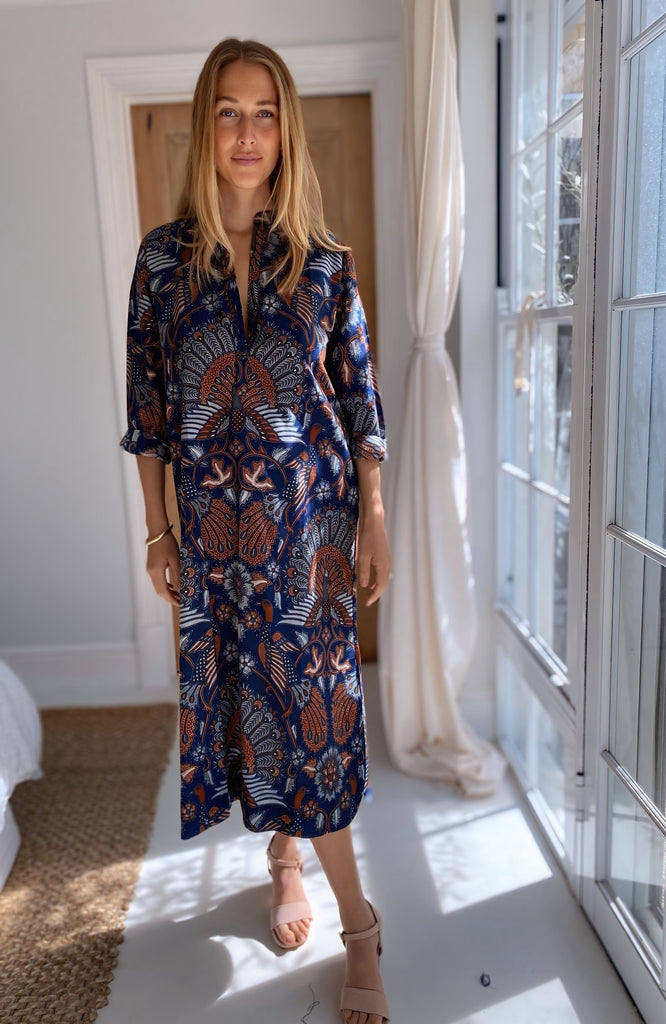 Woman wearing a floral bikini set on a plain background FELLA Marcus Bikini Bottom in Vintage Floral Iridescent Sea Fremantle