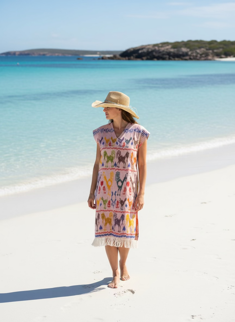 This playful Ikat Tunic features hand-woven cotton fabric with vibrant patterns and a flirty tassel hem. The flattering V neckline and relaxed, easy-to-wear cut with side splits add a fun, breezy vibe perfect for sunny days and lively nights. Throw it straight over your swimwear, or pair it with shorts.