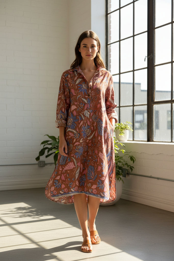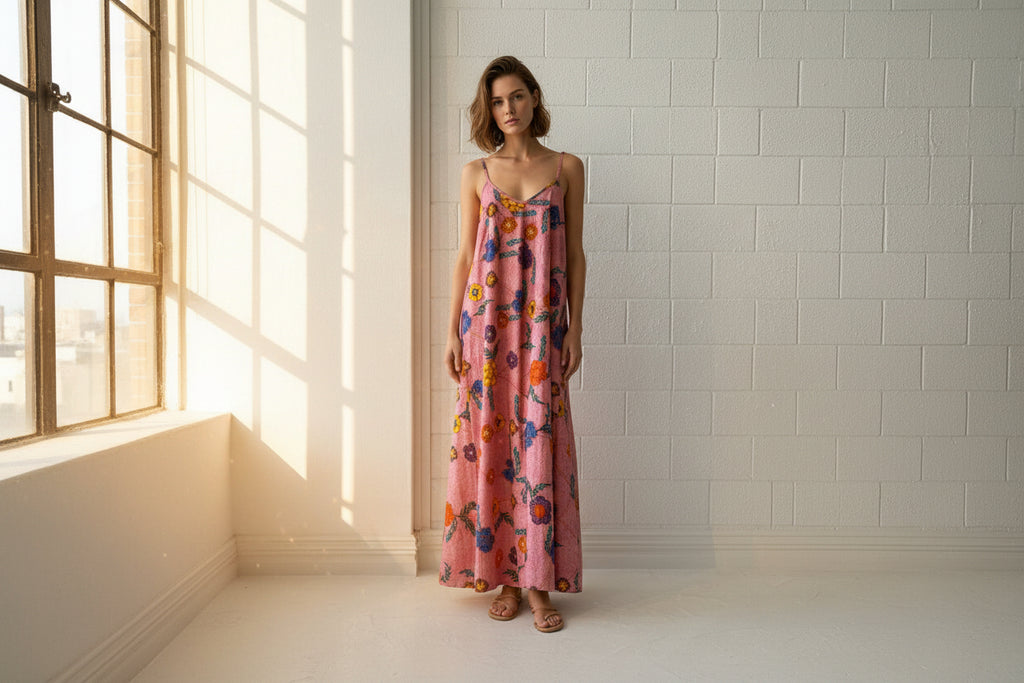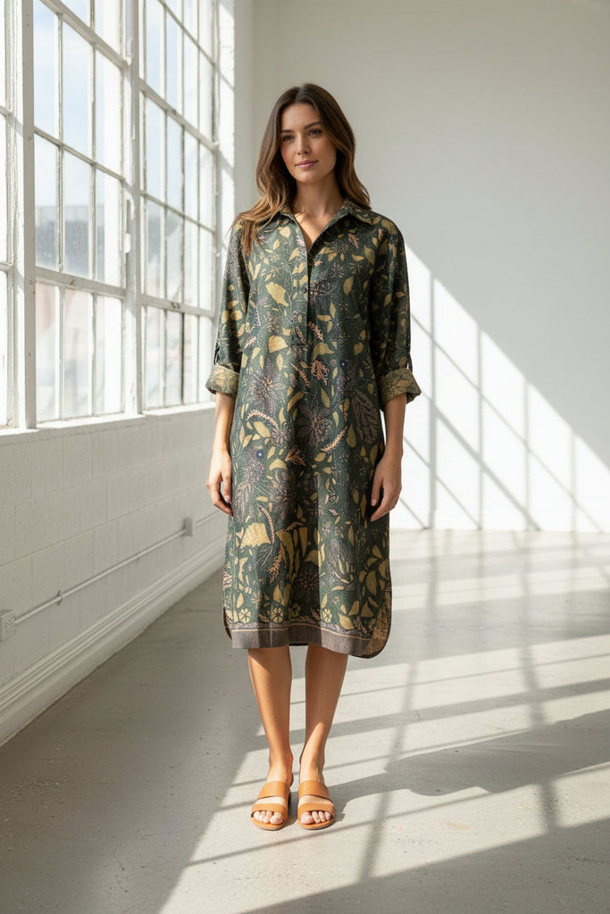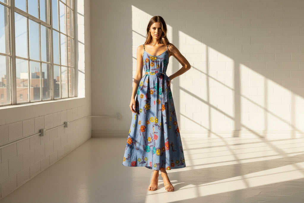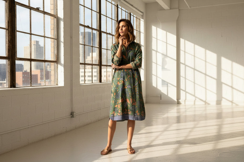 Viscose dobby with a fluid hand gives the skirt movement and rhythm. Its full length drapes with grace while remaining effortless to wear.