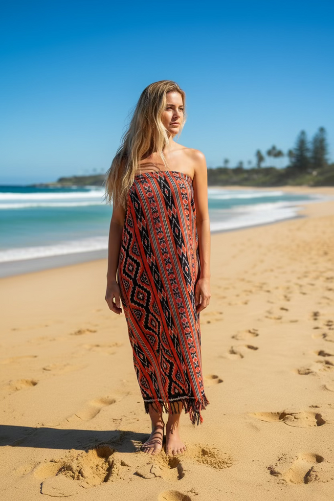 Indulge in the ultimate luxury with our Ikat Beach Towel Sarong. Made from hand-woven cotton, this premium beach essential showcases intricate ikat patterns, elevating your beach style to new heights. Wrap yourself in style and comfort with this must-have accessory.