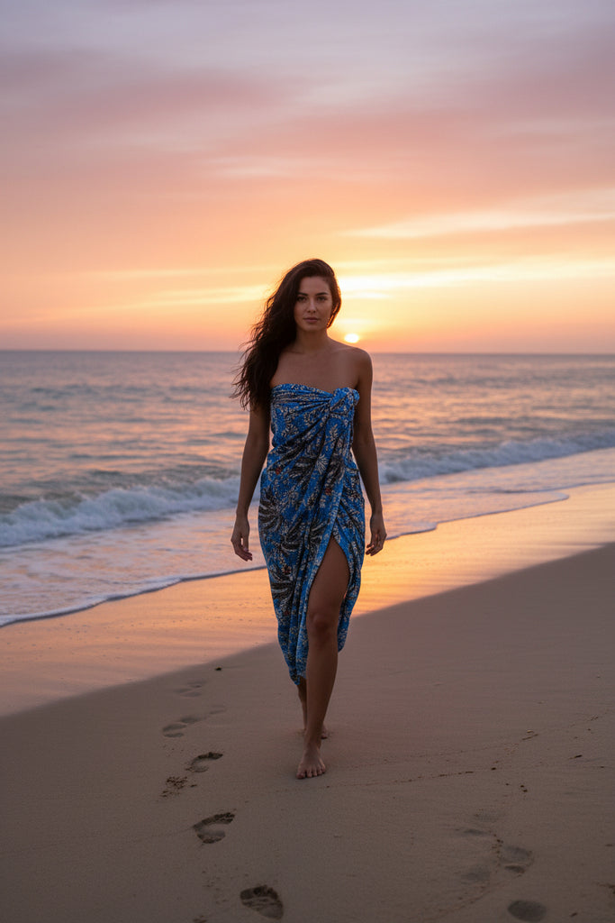 This artisanal cotton sarong showcases an authentic Balinese batik pattern, combining cultural heritage with contemporary coastal style. Lightweight and versatile, it layers beautifully over swimwear or stands alone as a beach essential, offering understated elegance for the discerning traveller.