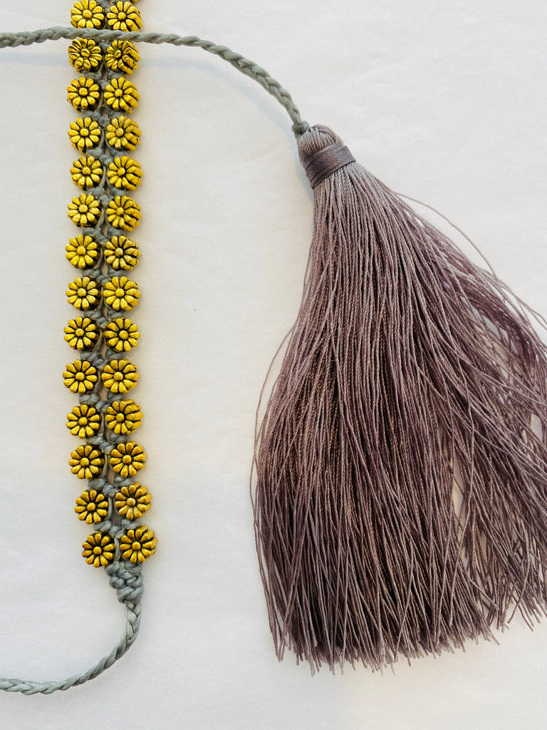 Hand made hat bands. Intricately made in brass daisies & tassels. Make a statement with your hat with these pretty charms. Buy one for each outfit to suit your colours...